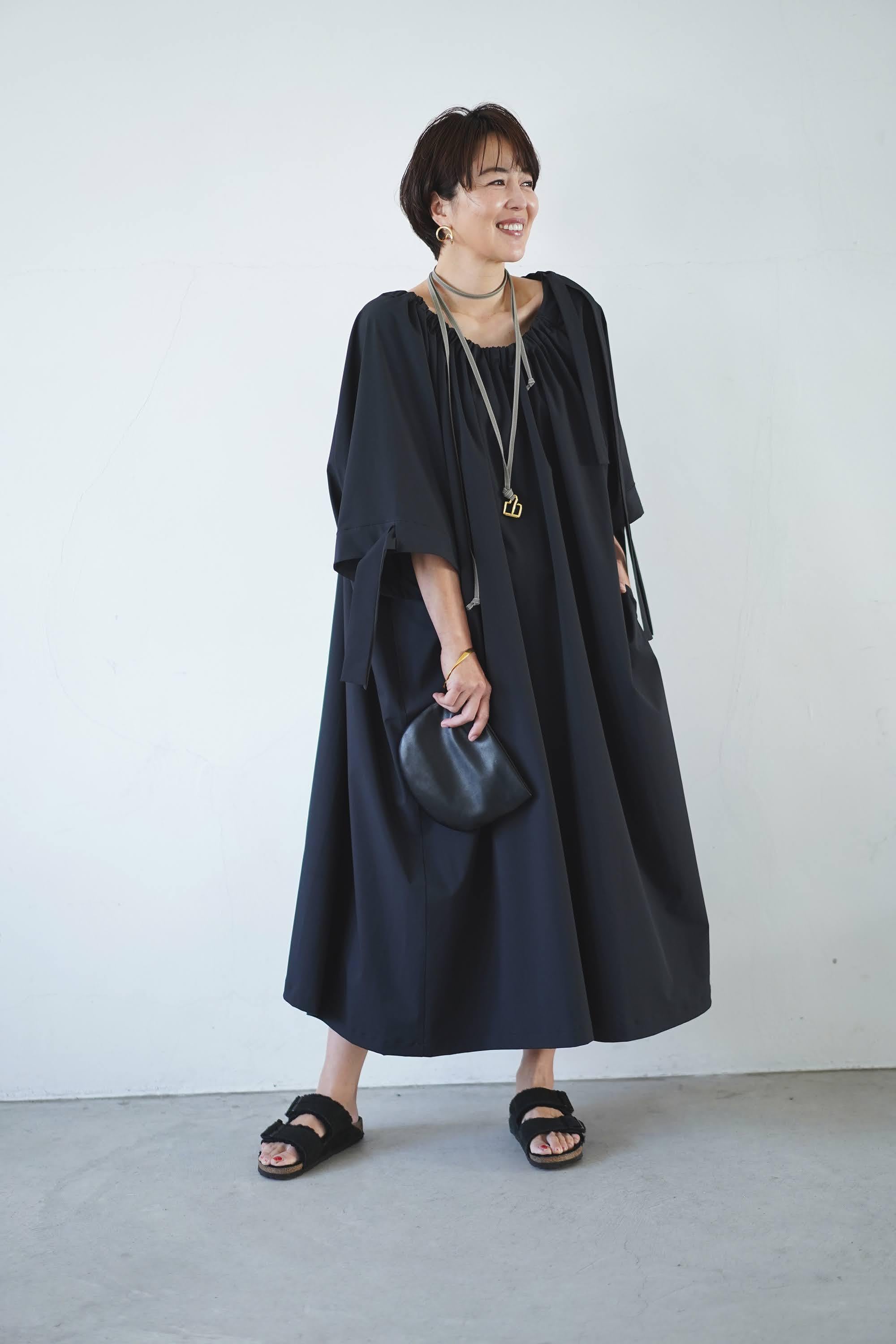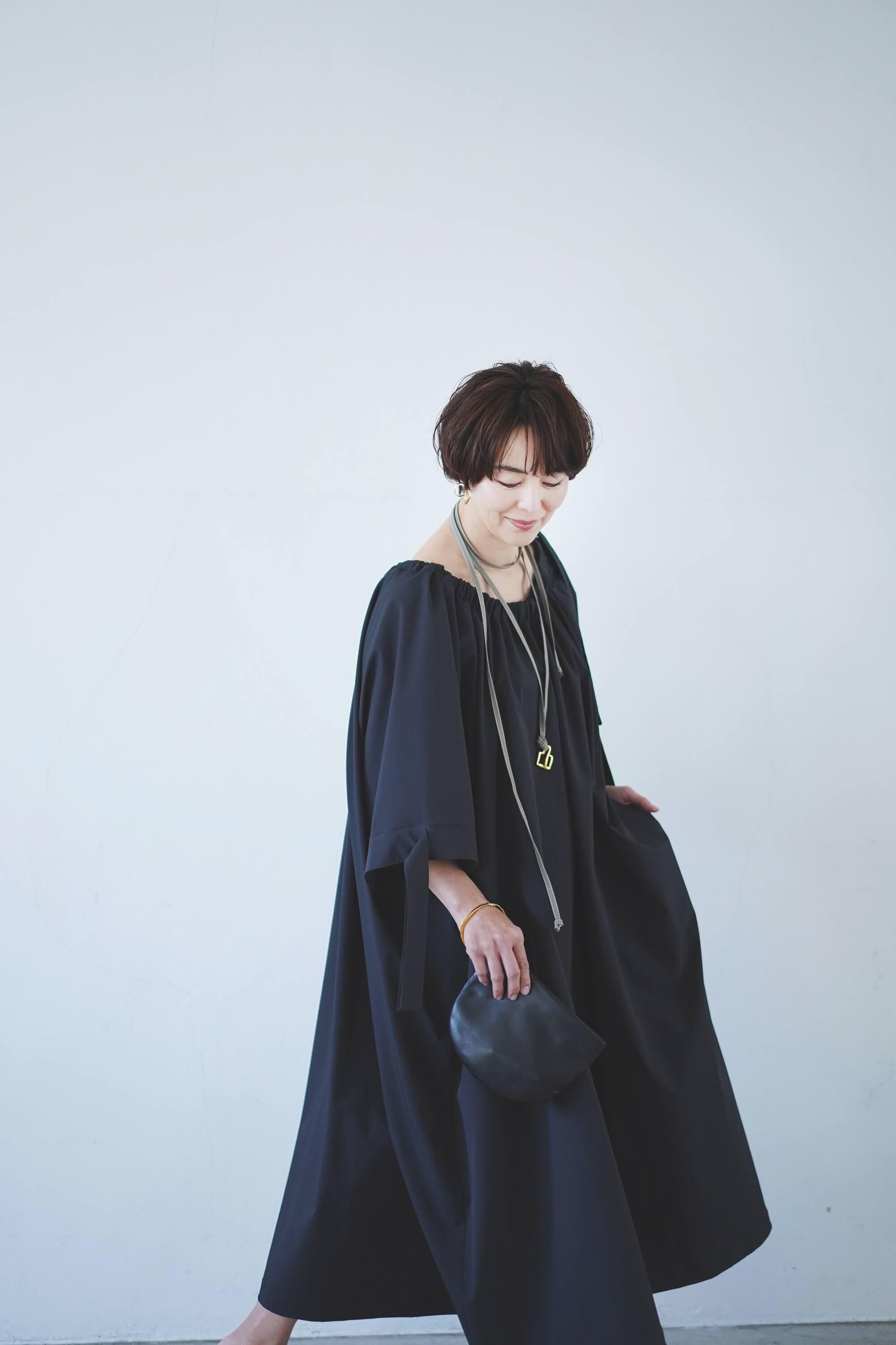 首元は小さく絞って上品に、広げて肩を出せばリラックスムードにも。気分やシーンに合わせた着こなしを楽しめます。