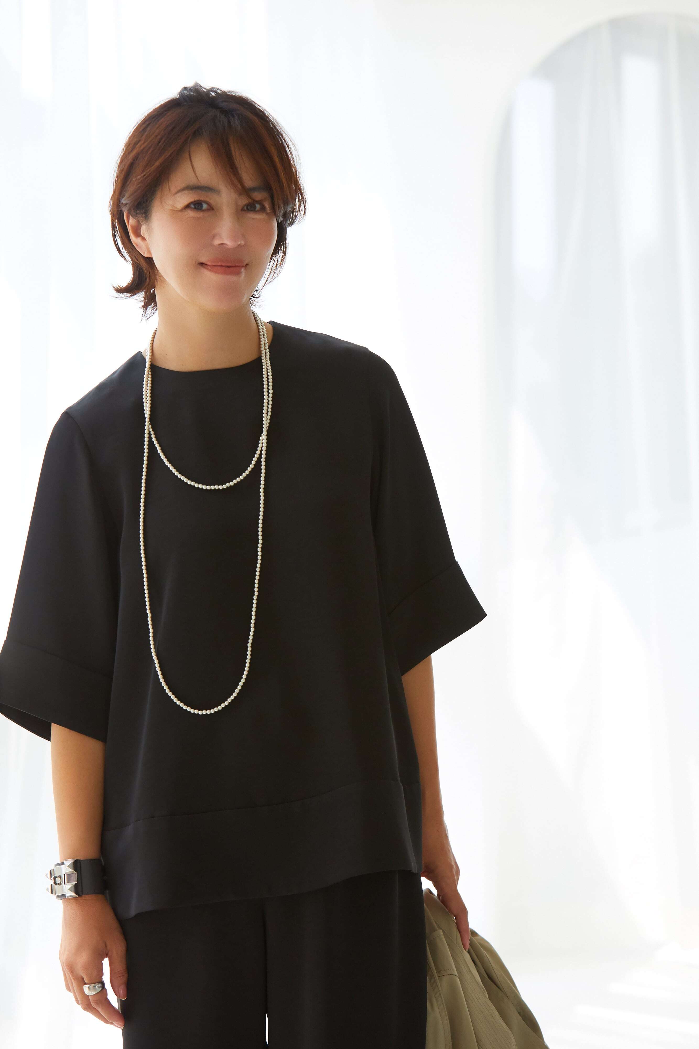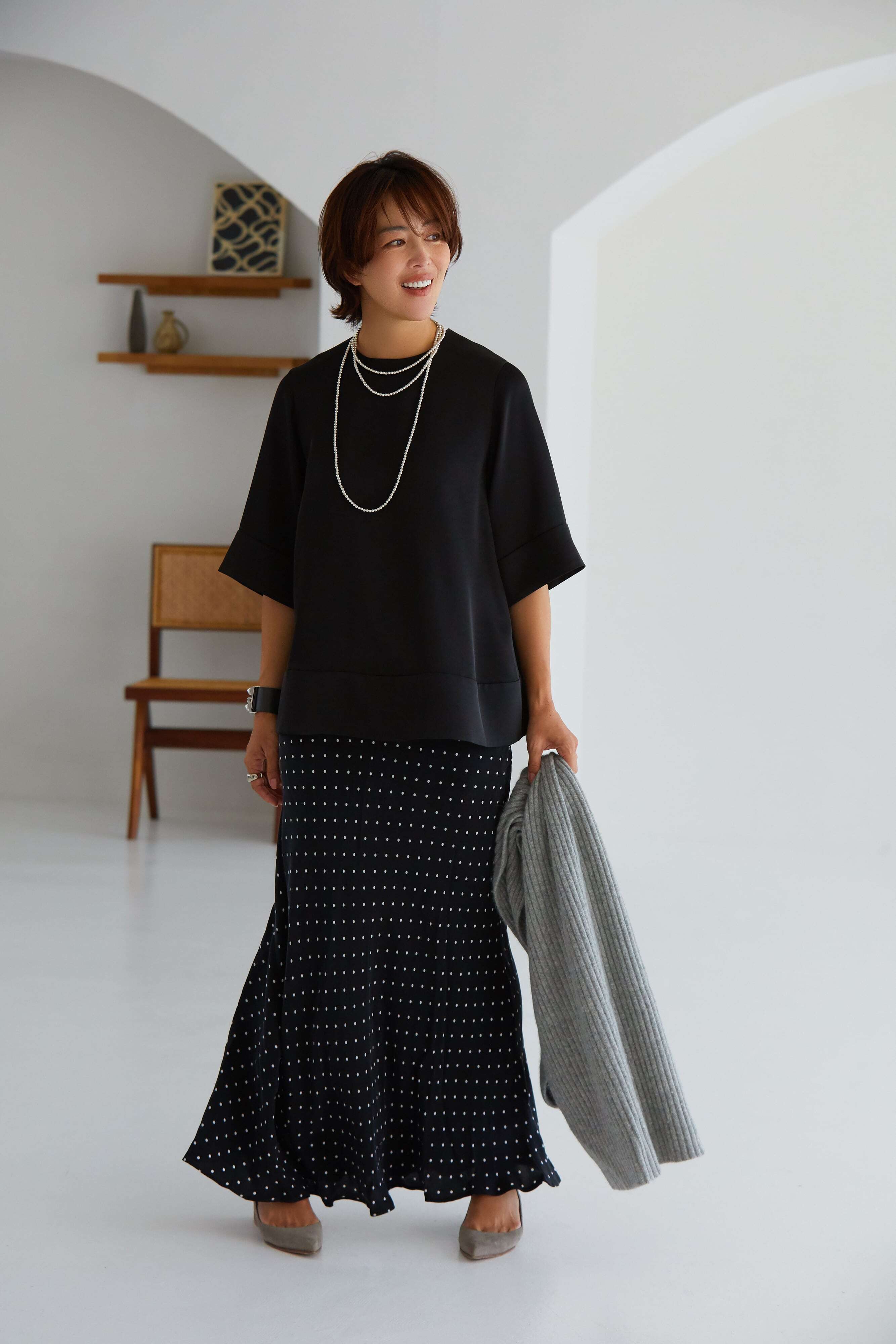 しっとりとした落ち感と、動くたびに優しく光をまとったような光沢感。肌に触れるとつるりと滑らかで、気持ちまでエレガントに。上品さと華やかさが共存する素材が、日常をより豊かに彩ります。
