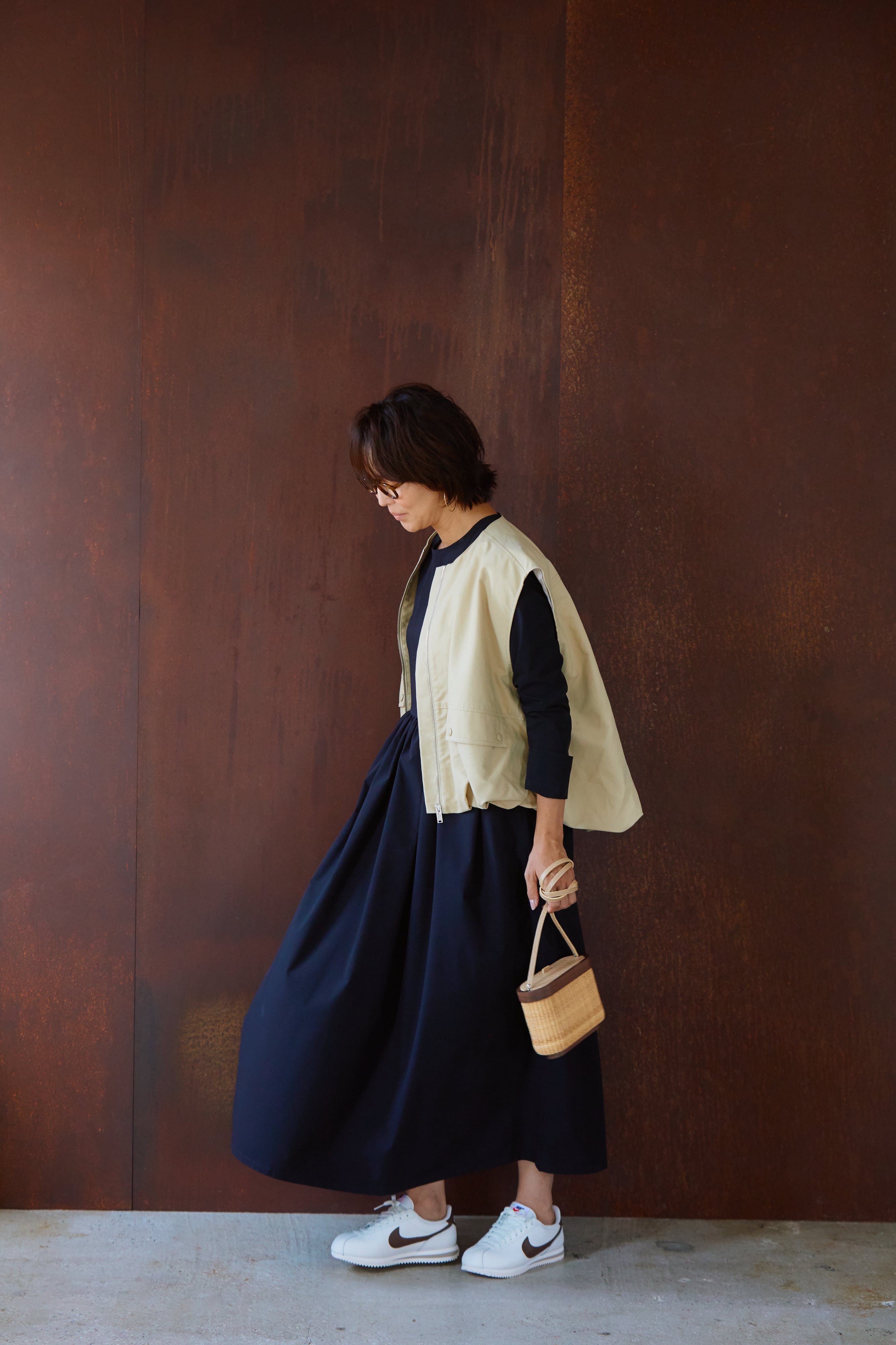 その結果、撥水機能はよりしっかりと、生地感に少しのハリが出たことで、より大人の身体をシャープに立体的に包み込むフォルムを出せる様になりました!