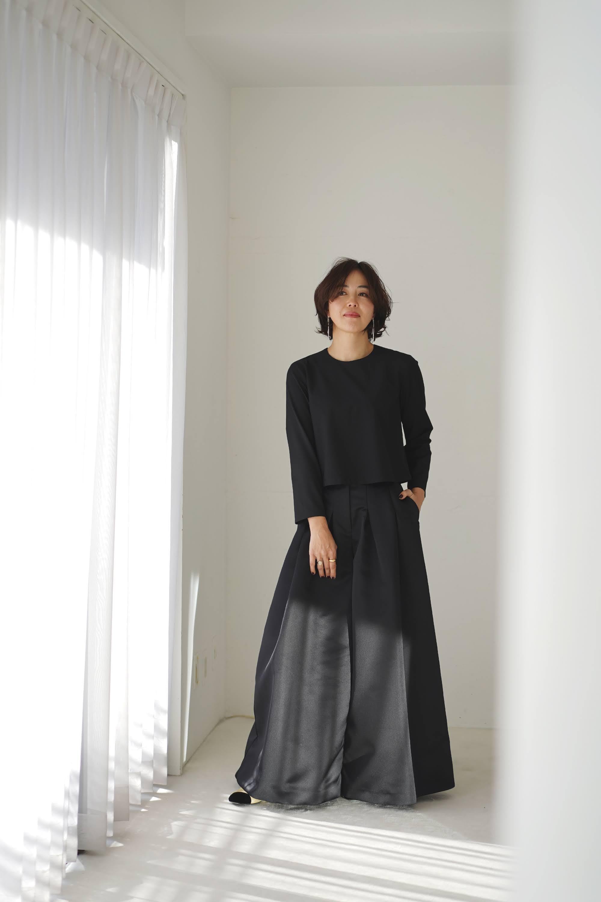 フレアだけで作る揺れが大人の可愛らしいスカートスタイルを演出します。