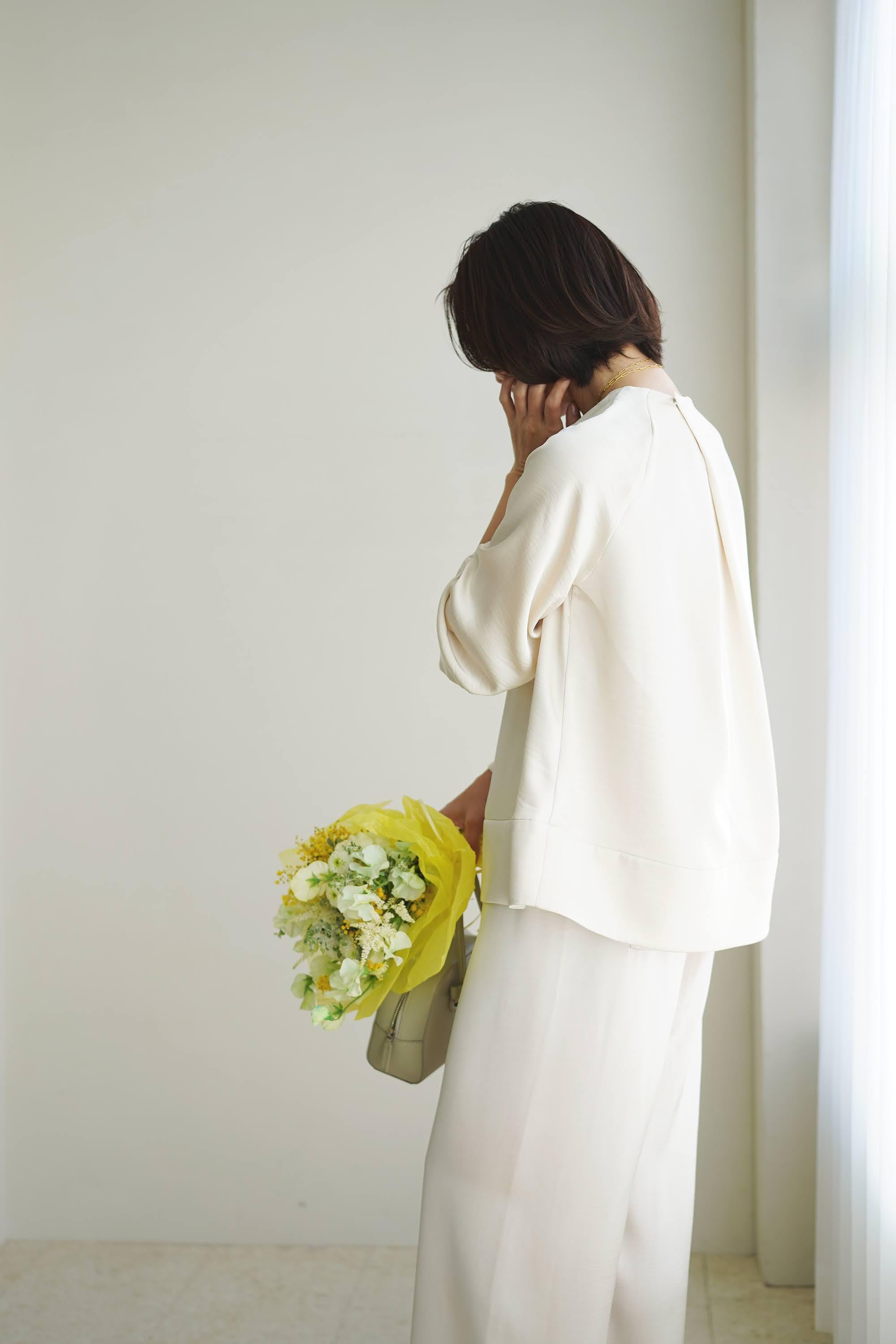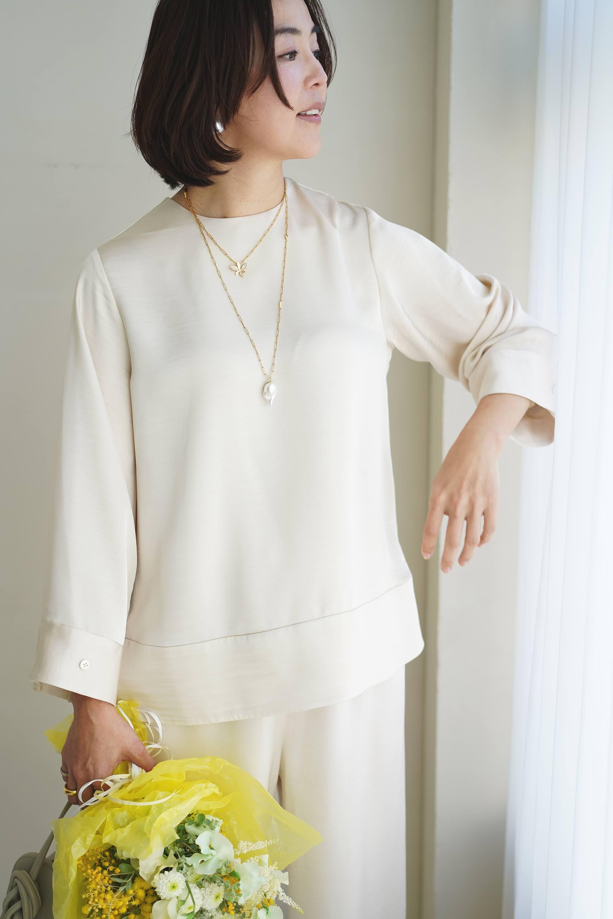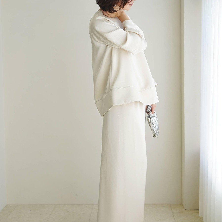 ●EVERYDAY blouse satin long sleeve パールホワイト