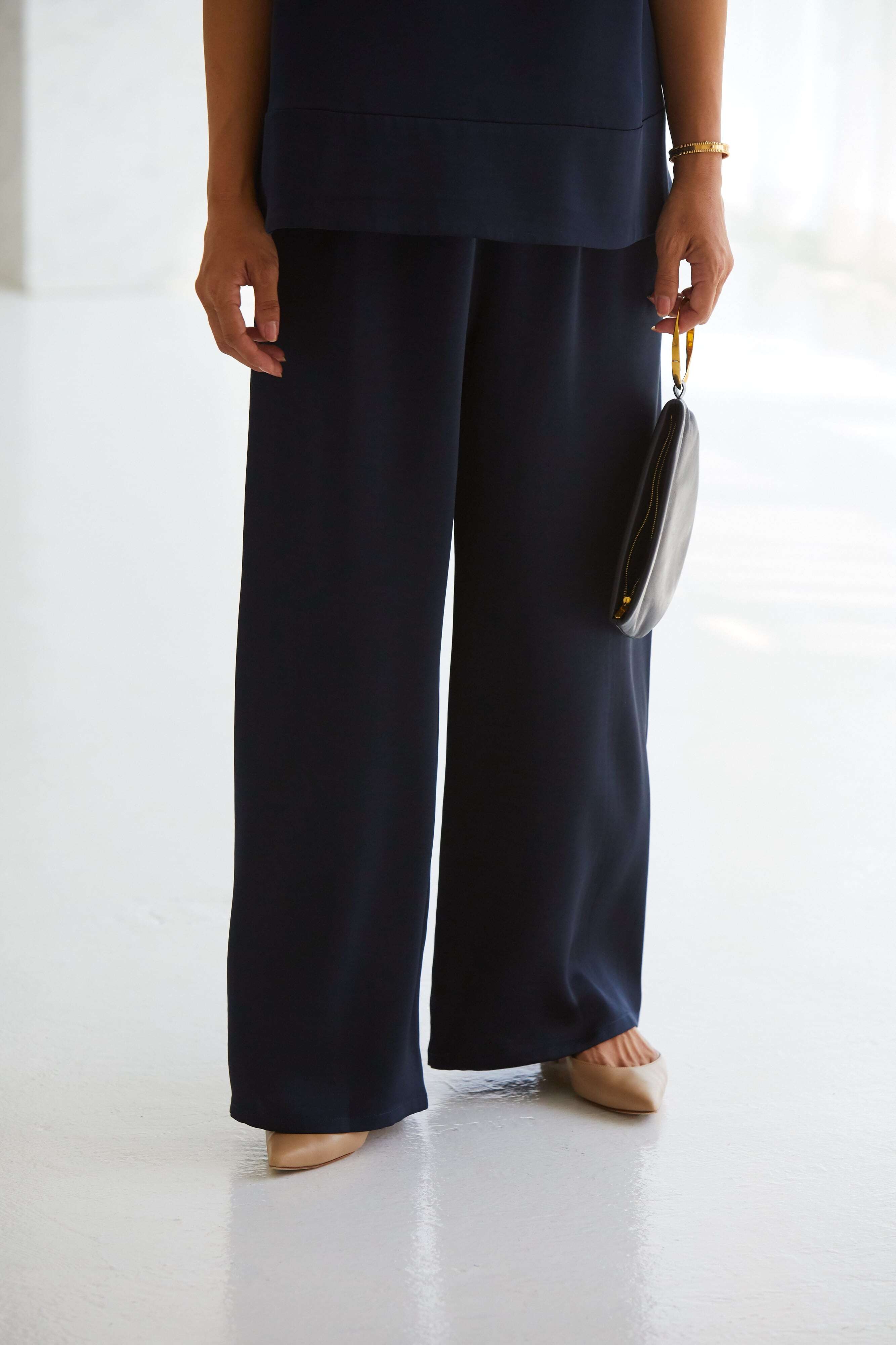 EVERYDAY PANTS wide satin ブルーサファイヤ
