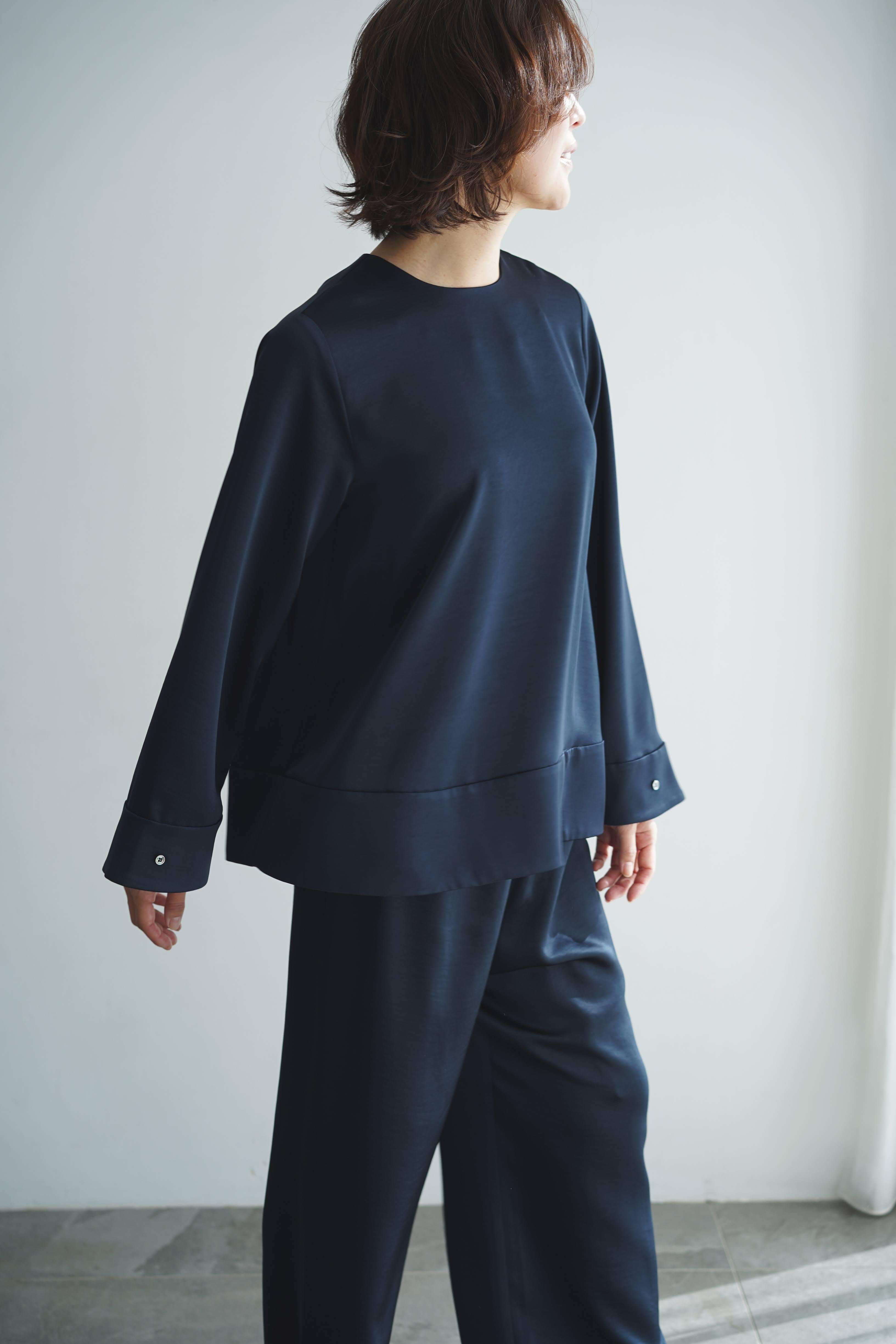 ●EVERYDAY blouse satin long sleeve ブルーサファイア