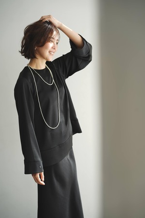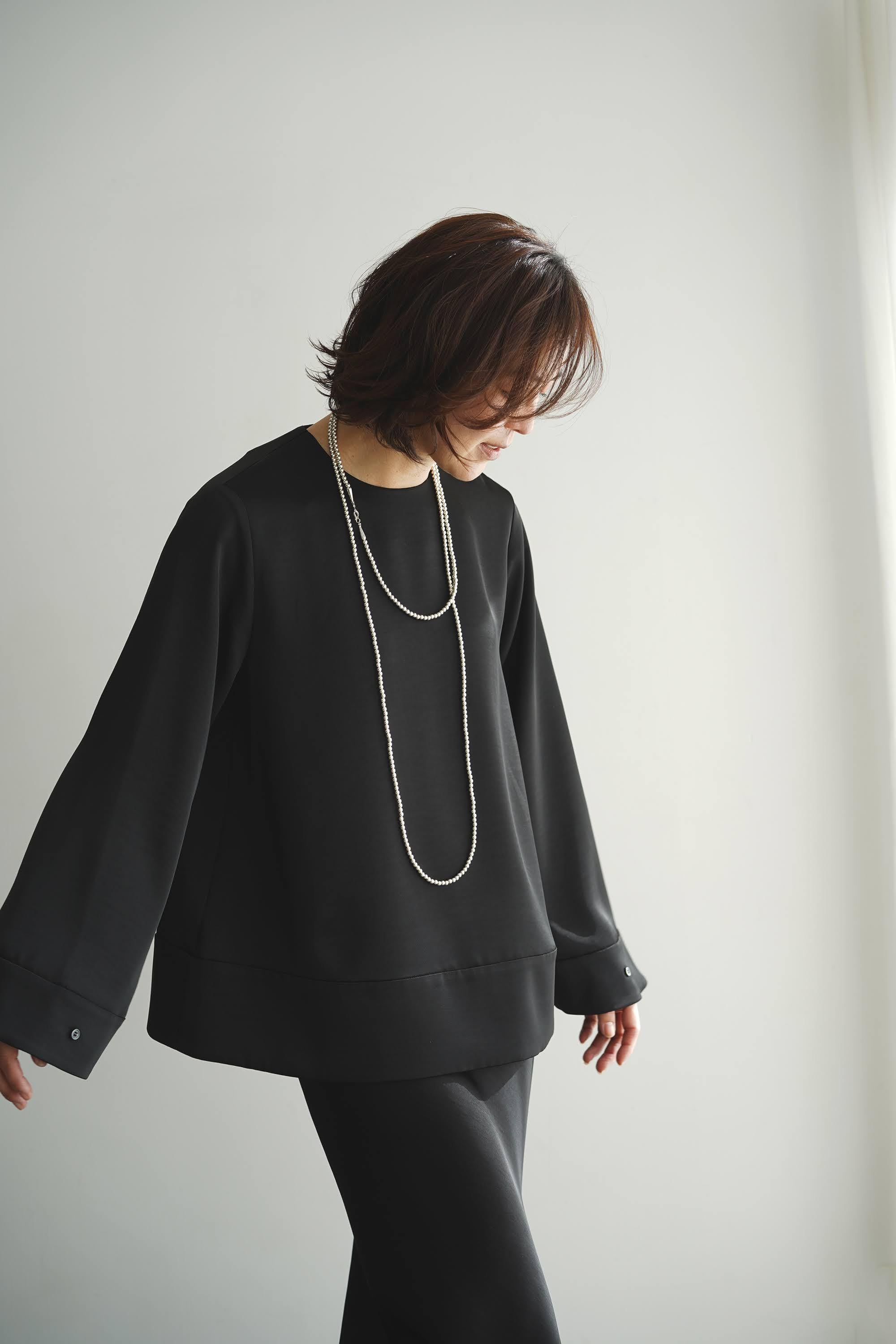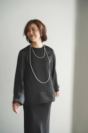 ●EVERYDAY blouse satin long sleeve ブラックオニキス