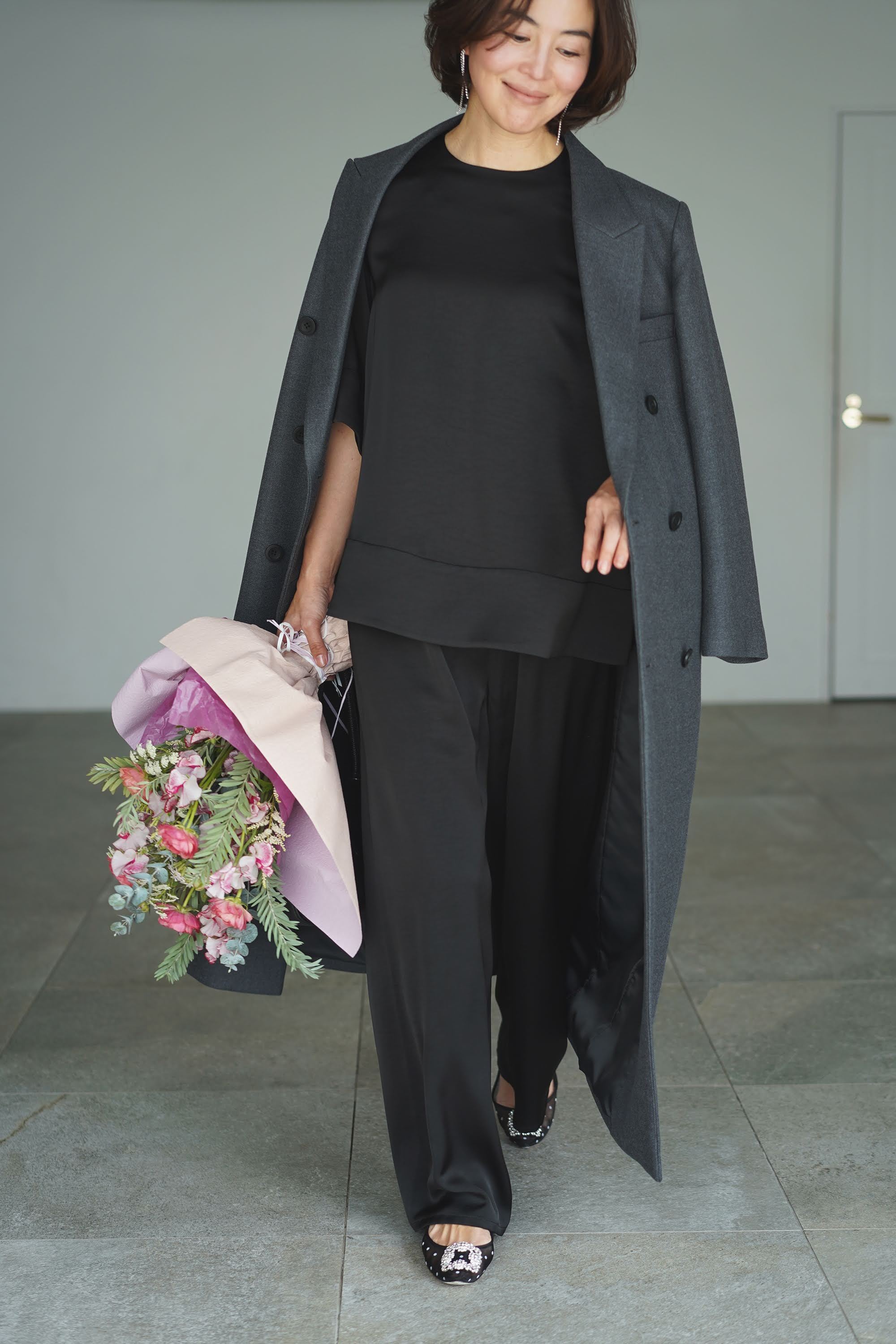 EVERYDAY PANTS wide satin ブラックオニキス