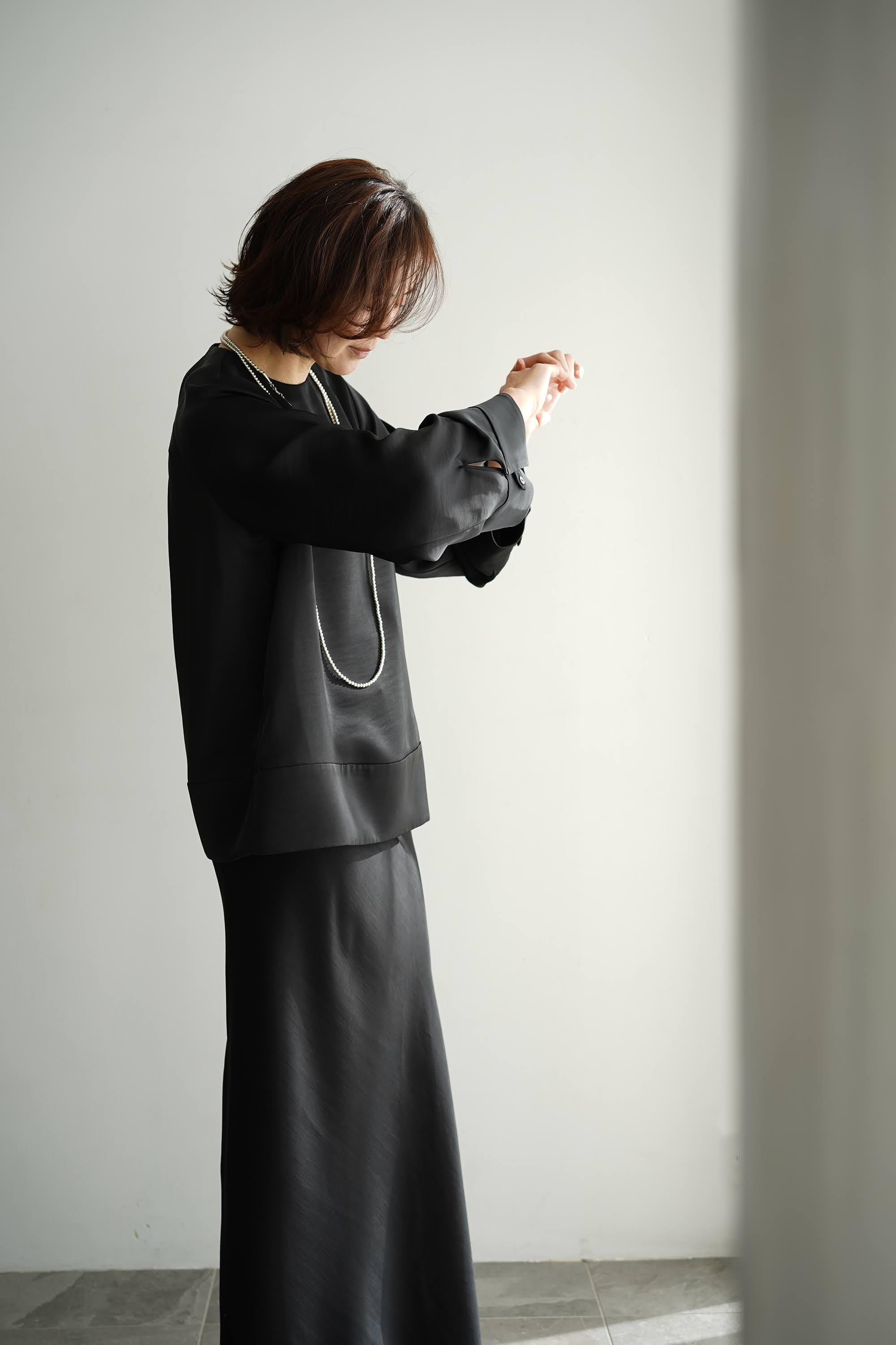 ●EVERYDAY blouse satin long sleeve ブラックオニキス