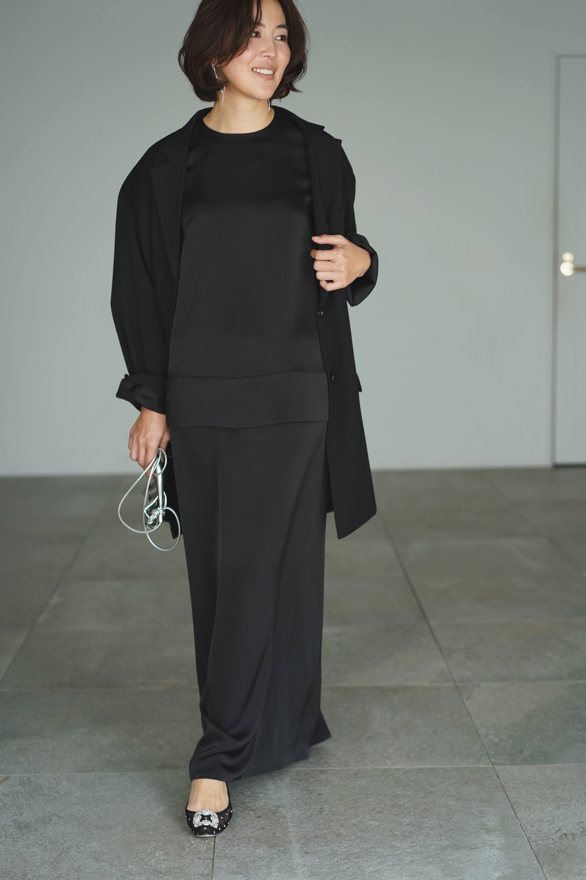 ●EVERYDAY Pencil SKIRT satin ブラックオニキス