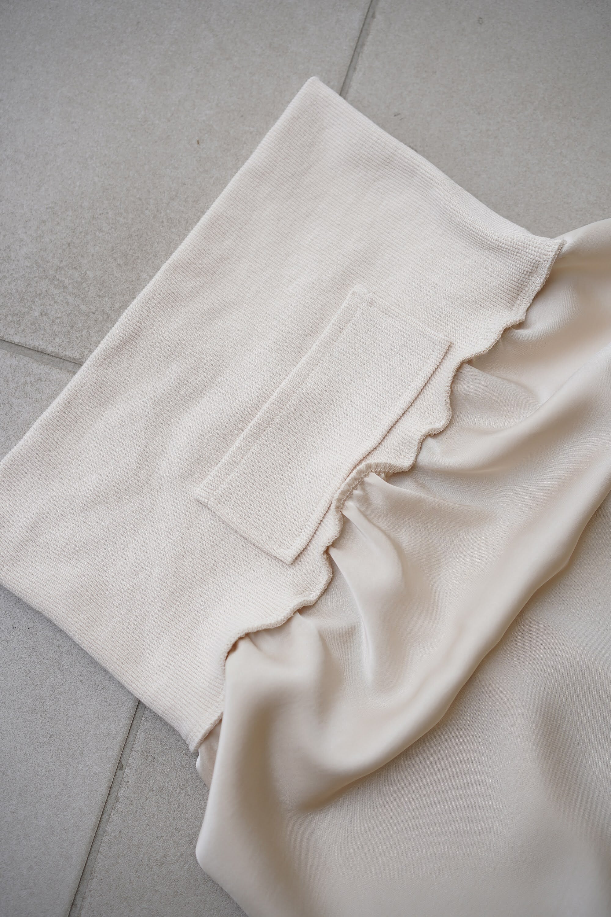 サテンシリーズに新たに仲間入りした長袖ブラウスと