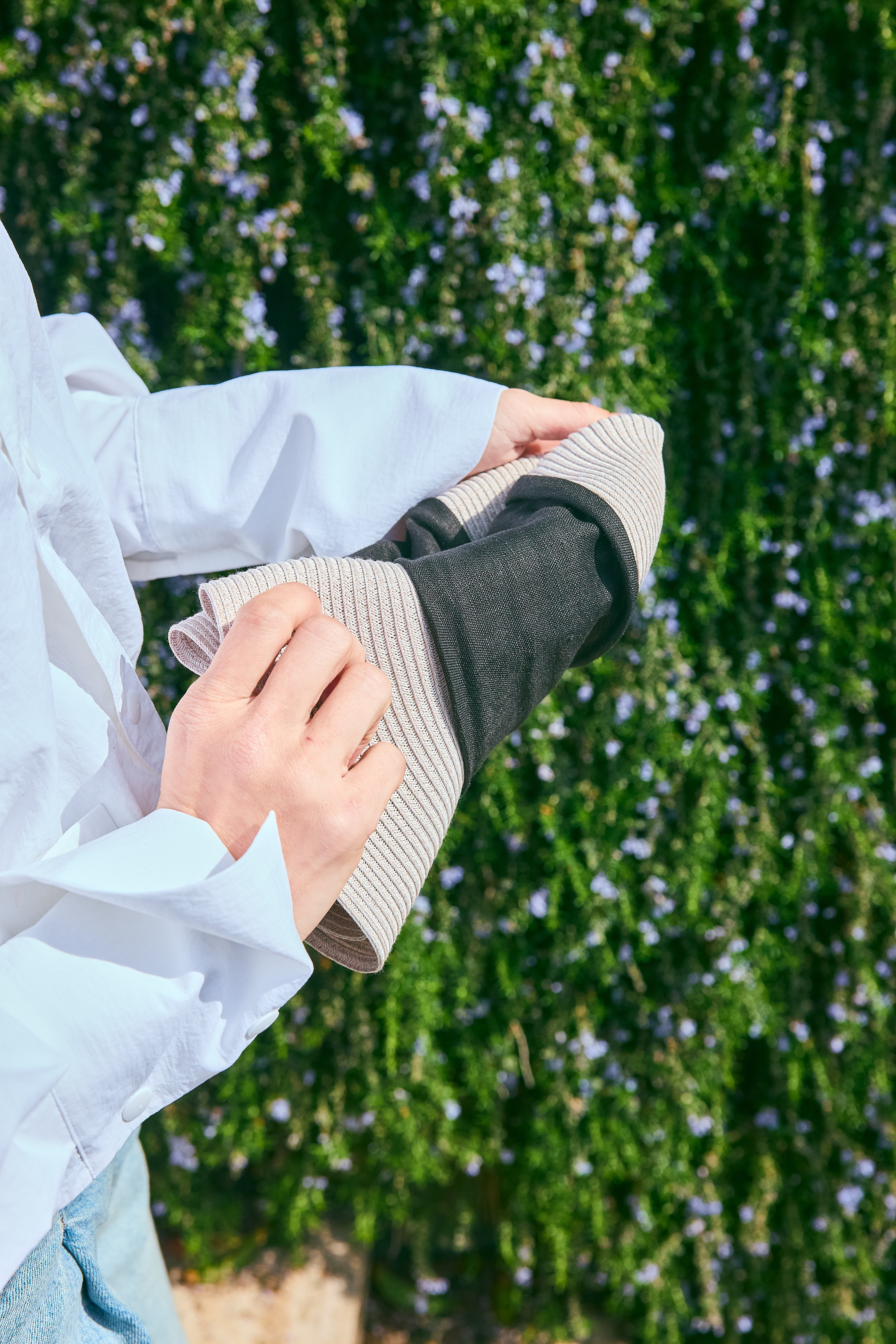 白とベージュとグレーをミックスしたような絶妙カラーで