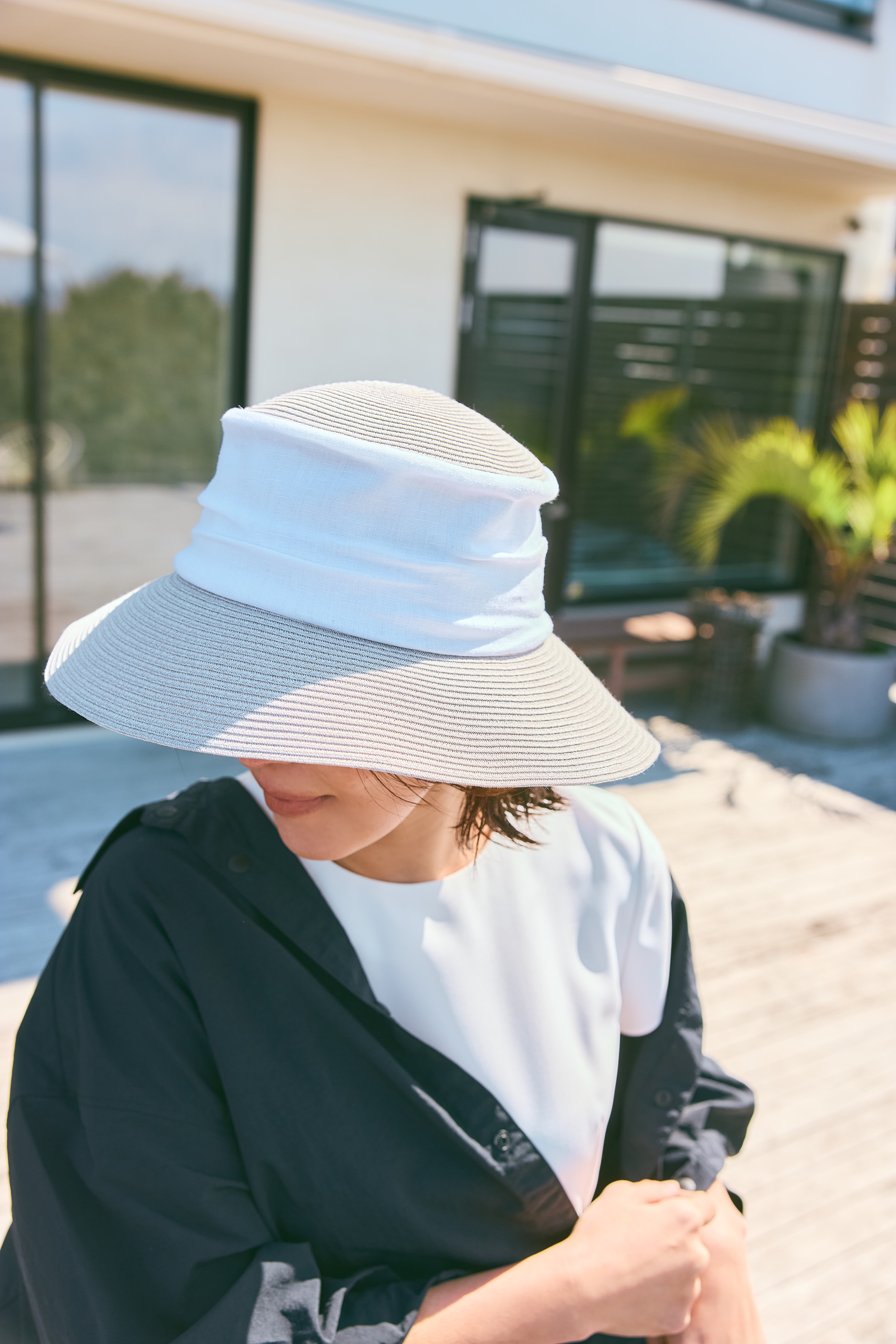 ●丸めて洗える SUMMER HAT soleile ナチュラル×白