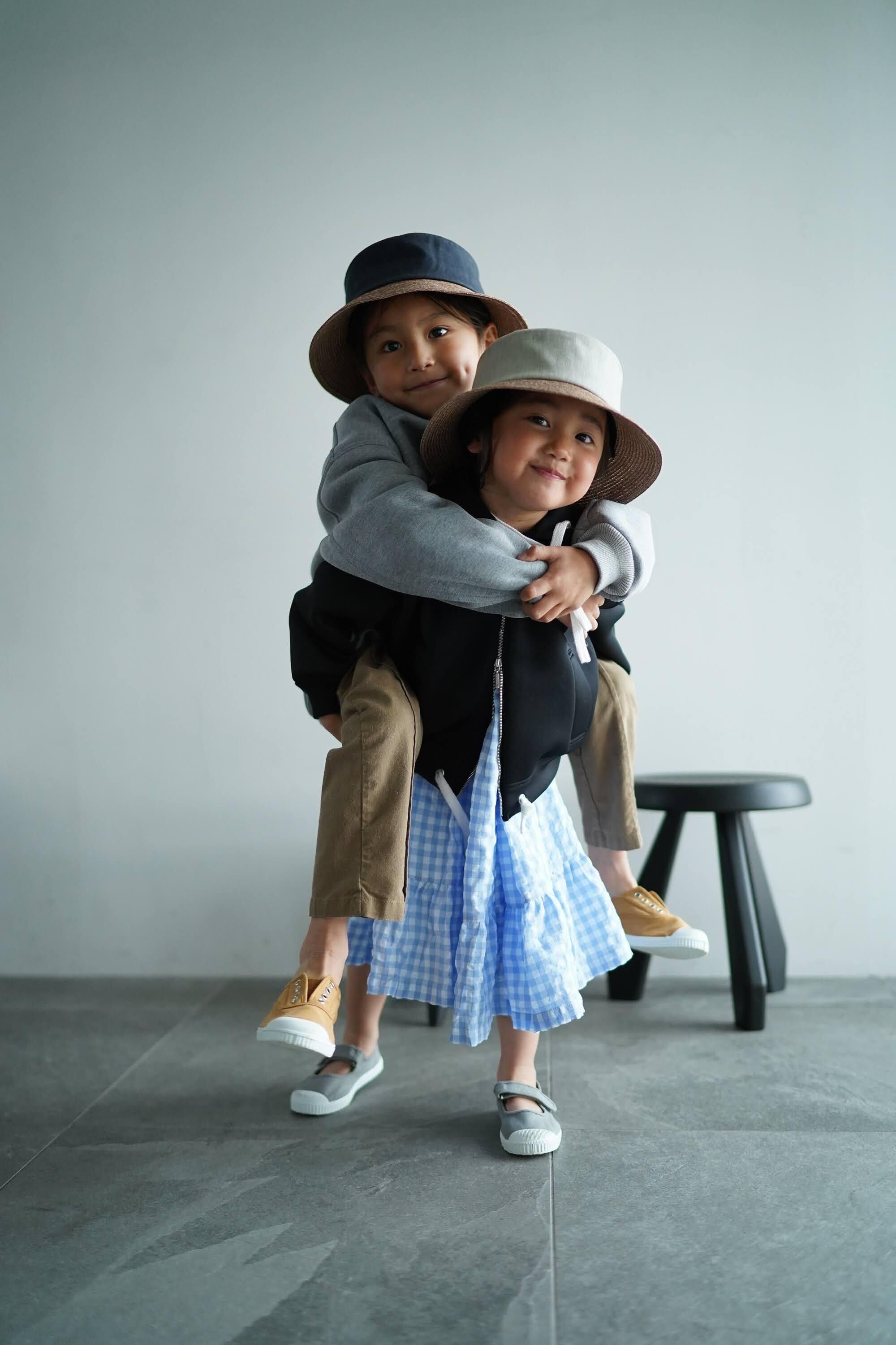 1)SUMMER HAT ベージュ×紺 / kids ベージュ×グレーネイビー