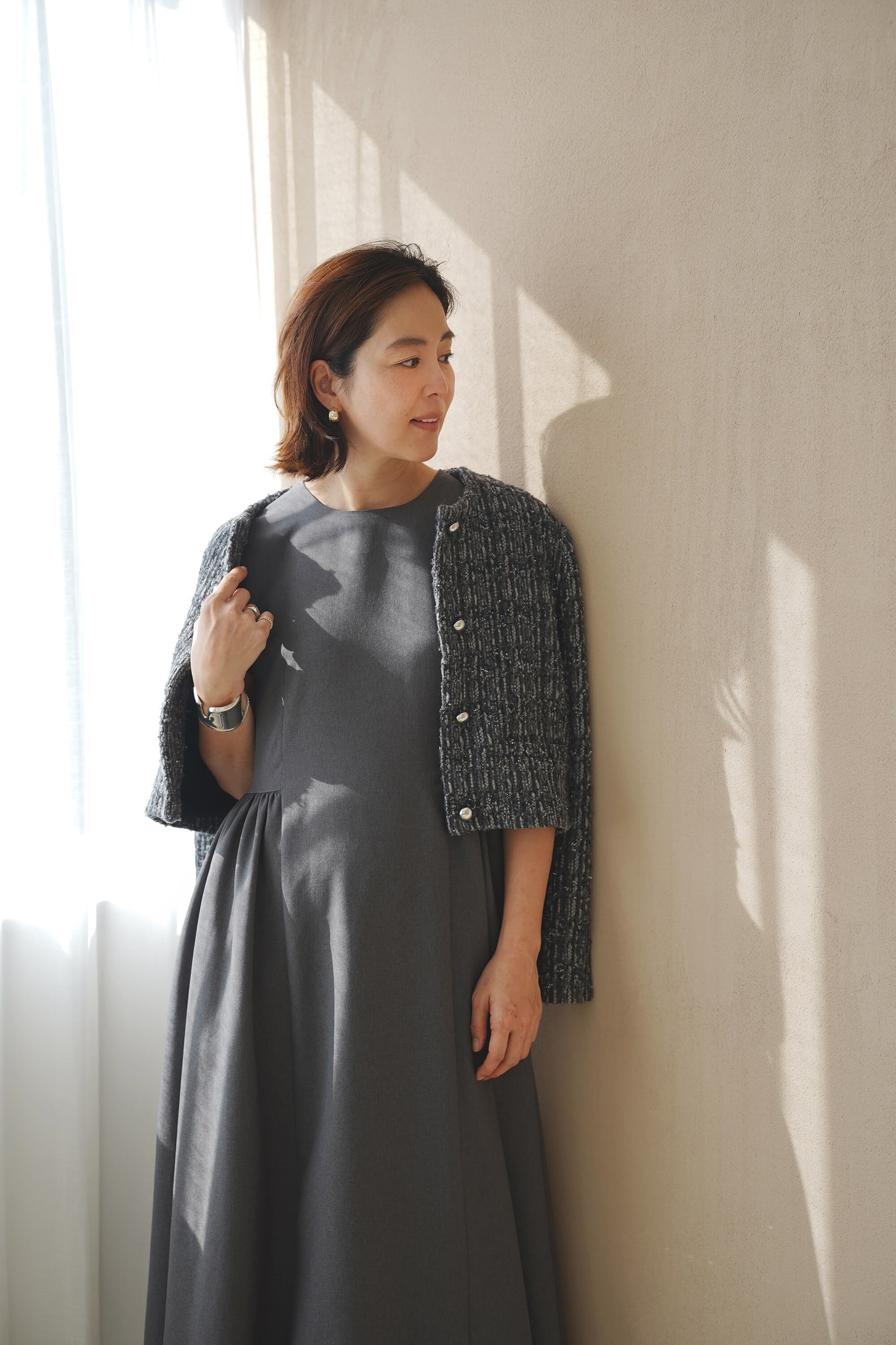 ●EVERYDAY DRESS mature s-sleeve ニュアンスグレー long [数量限定]