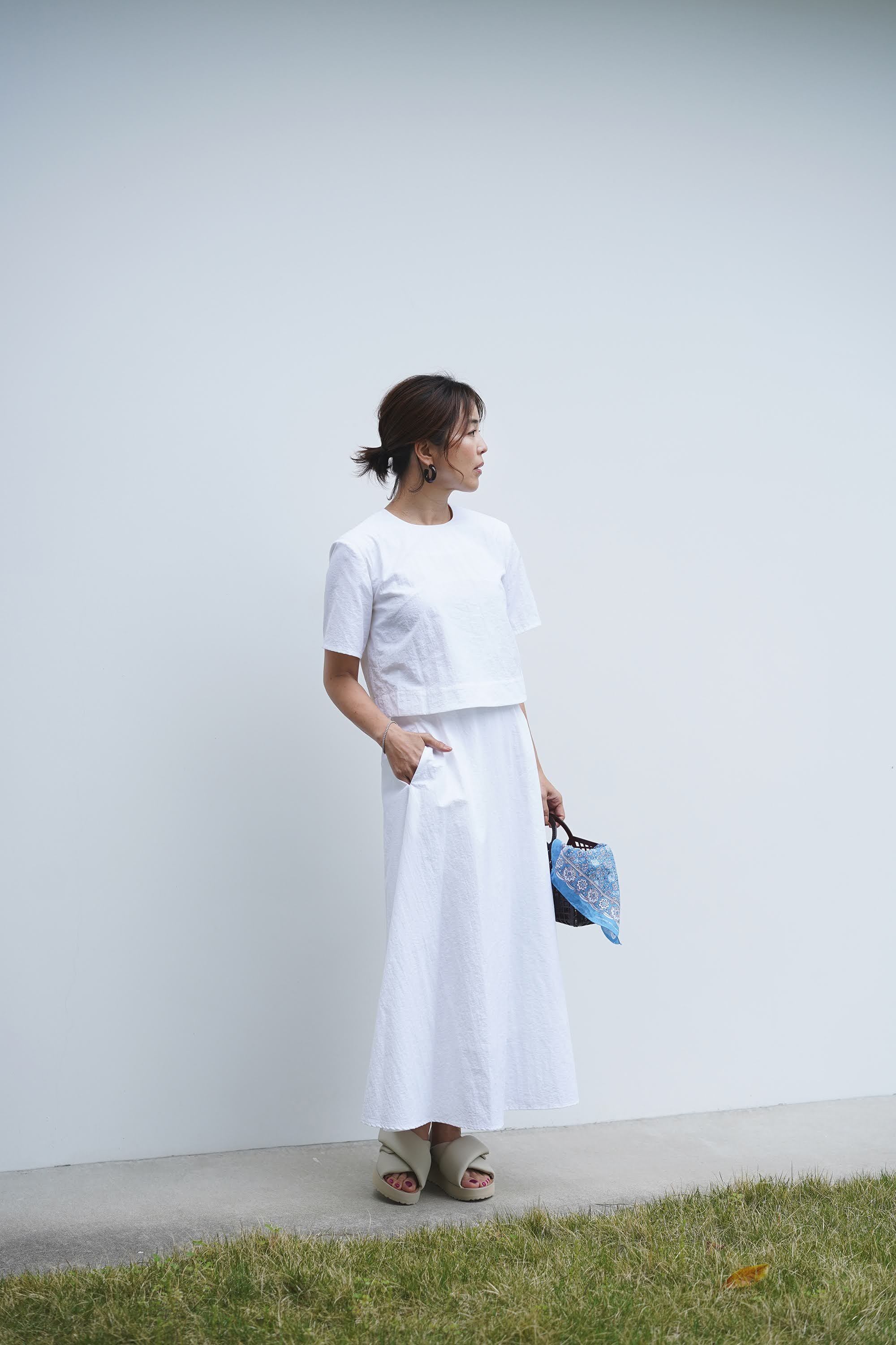 スカートは極シンプルな台形シルエットが