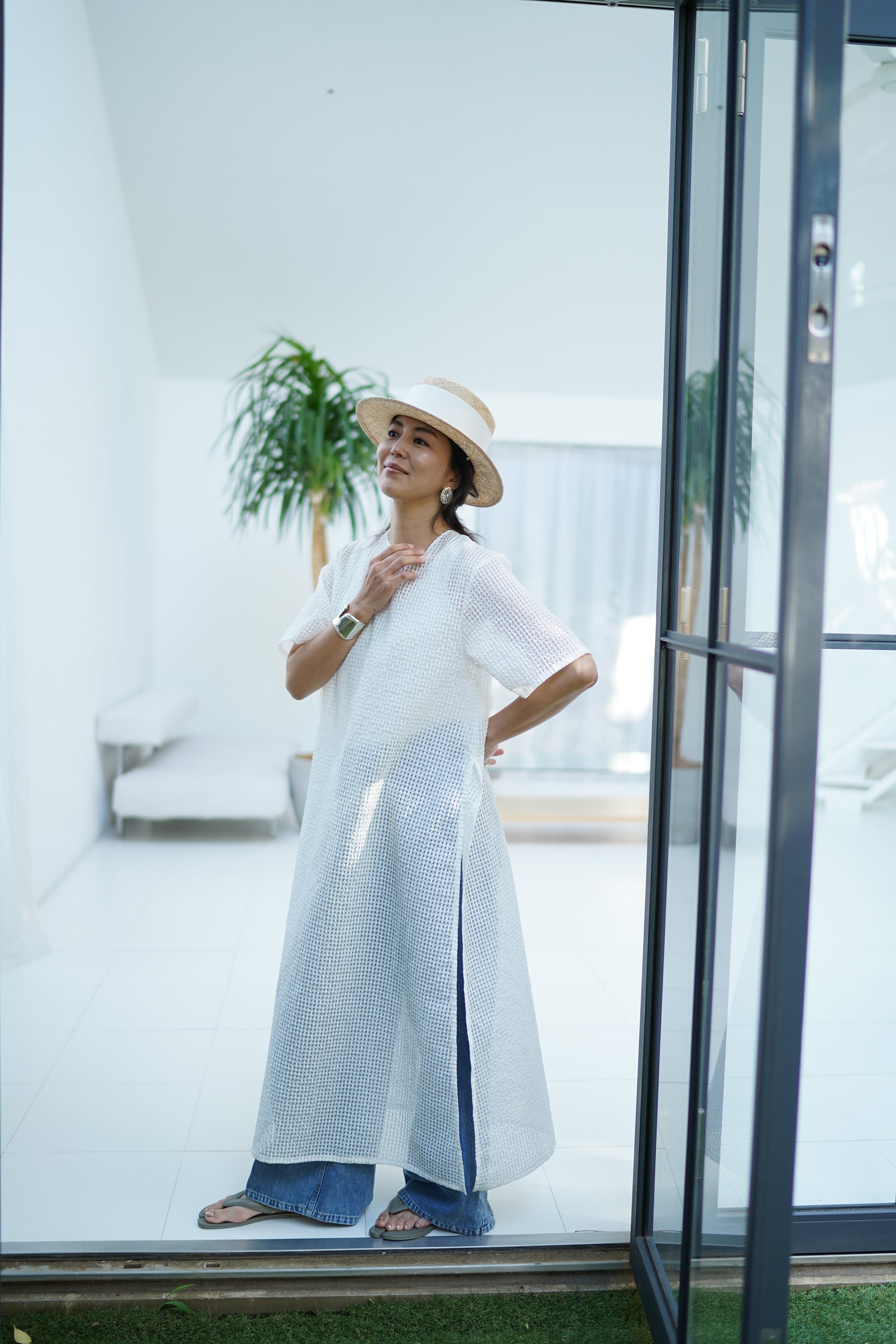お手持ちのキャミソールワンピースや水着の上などに重ねても使えます。