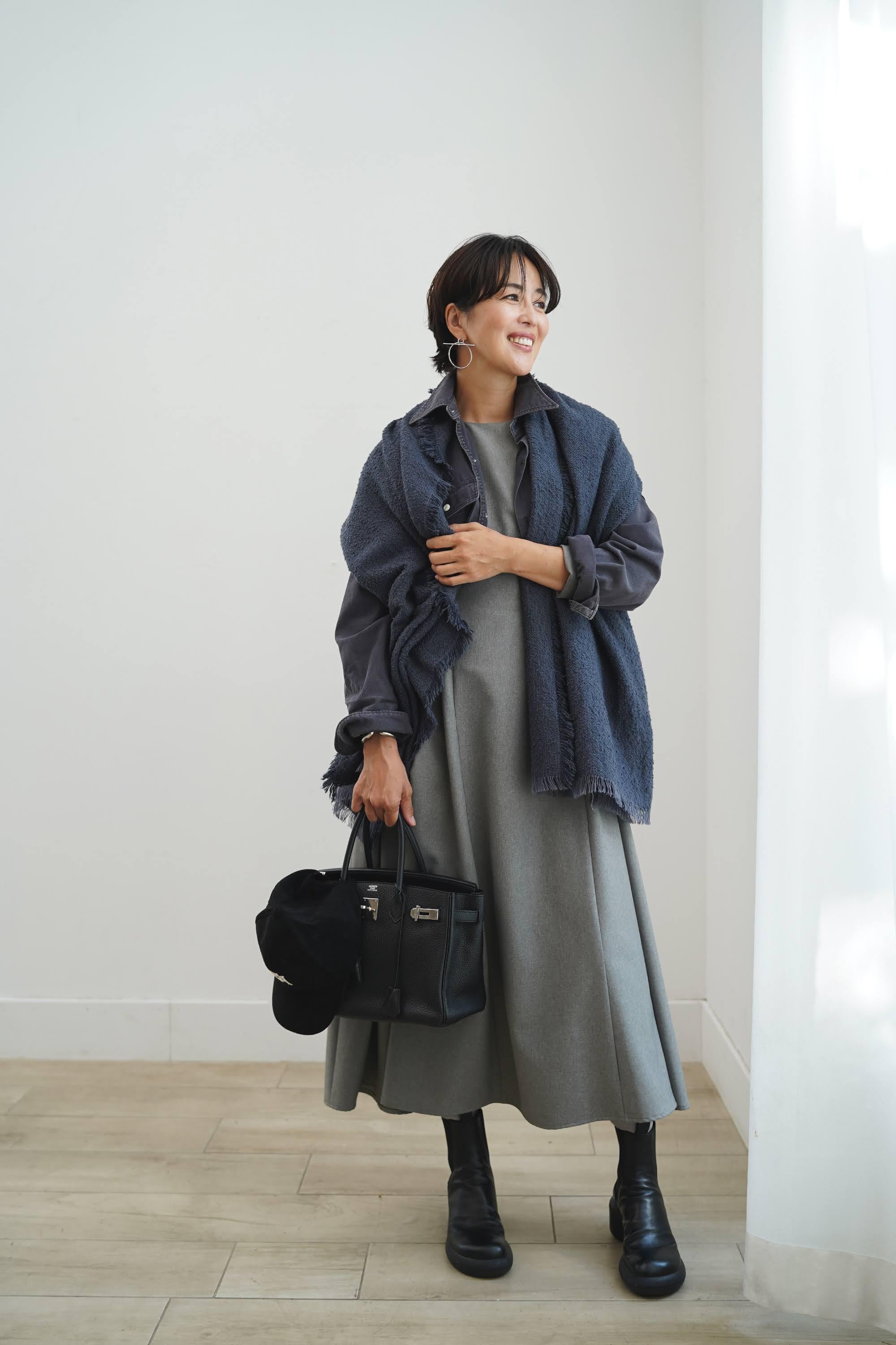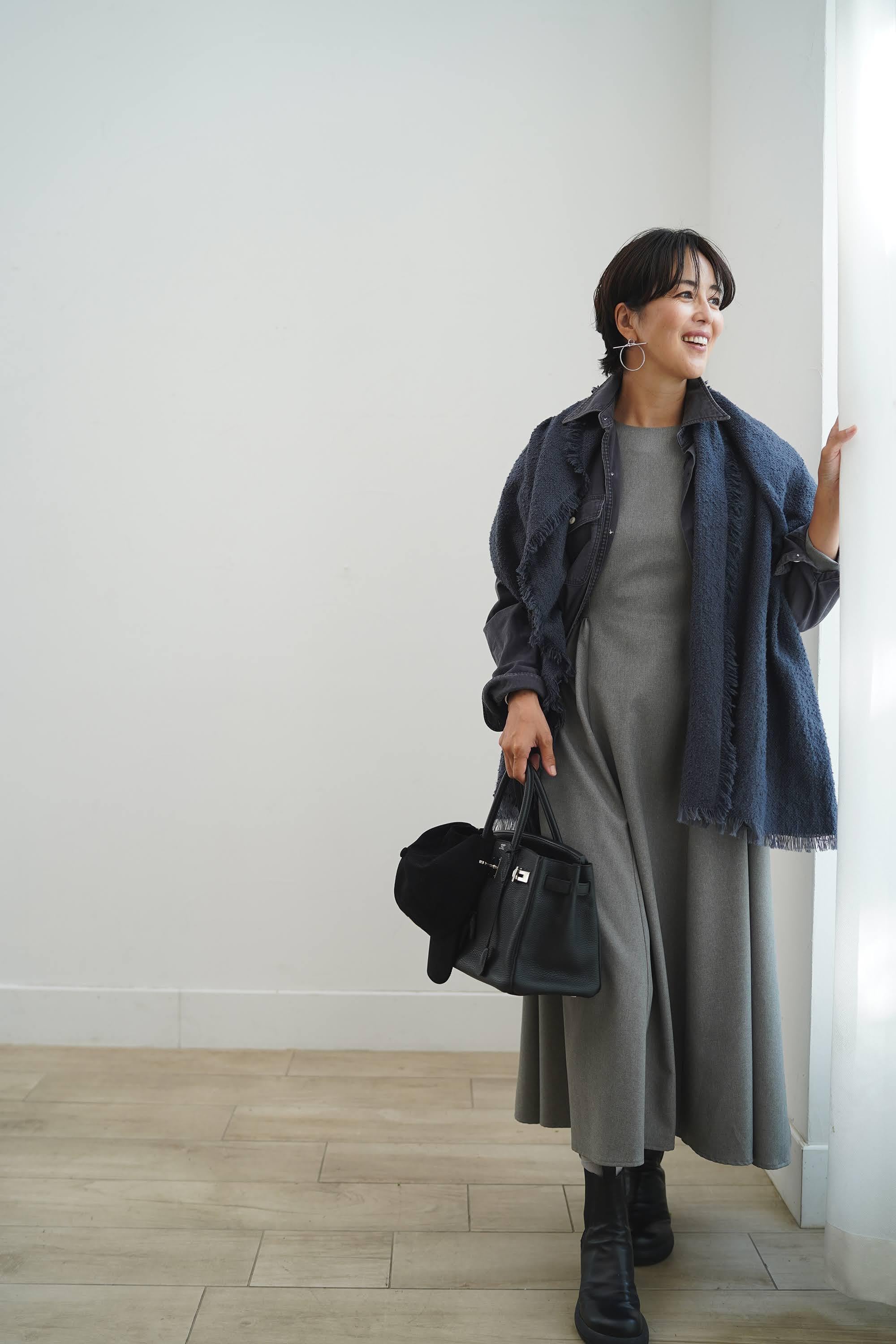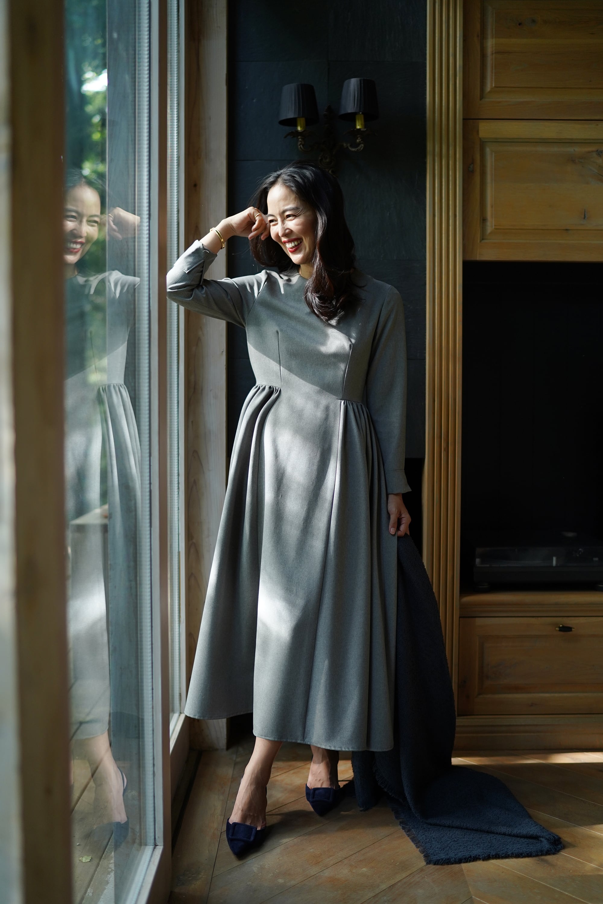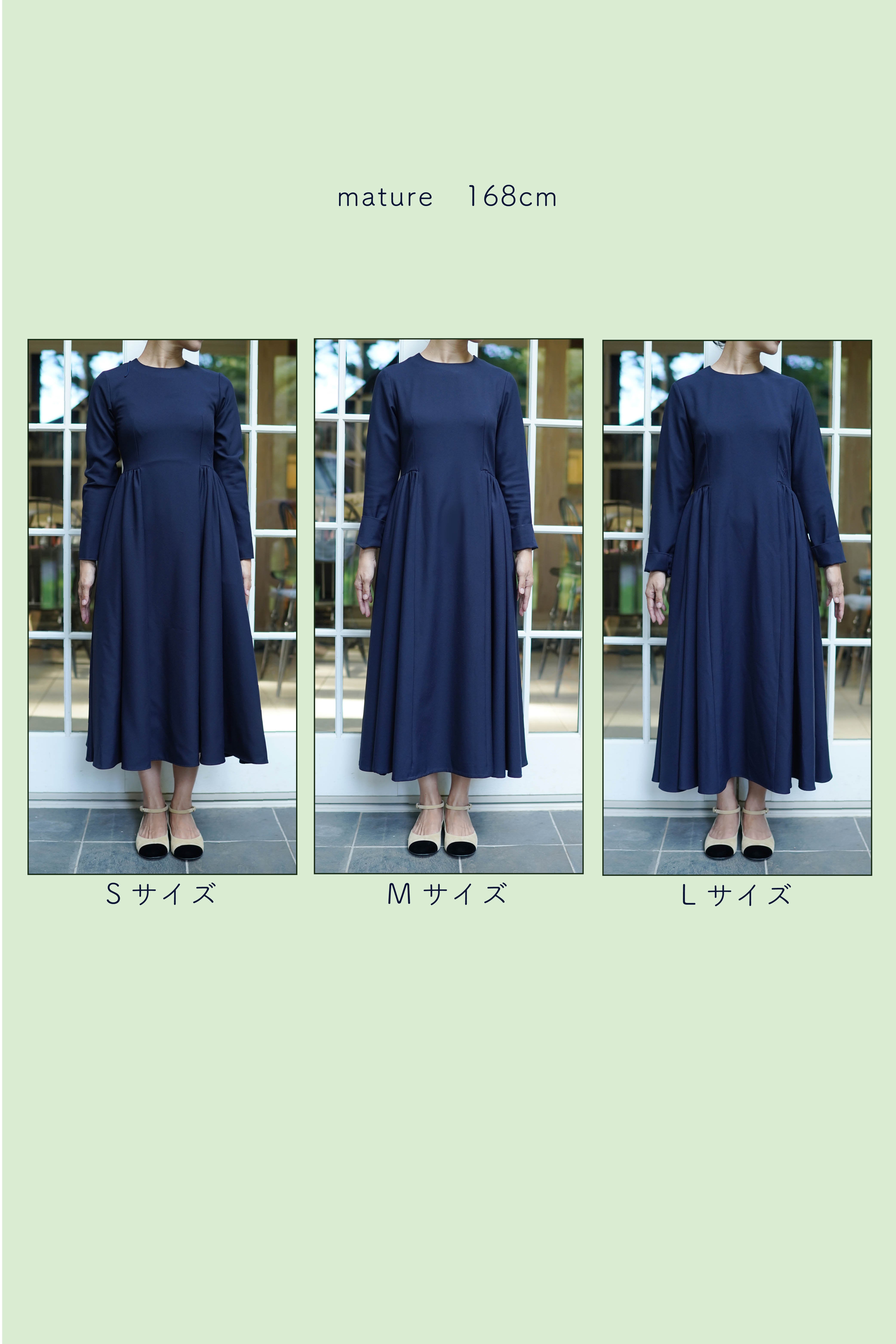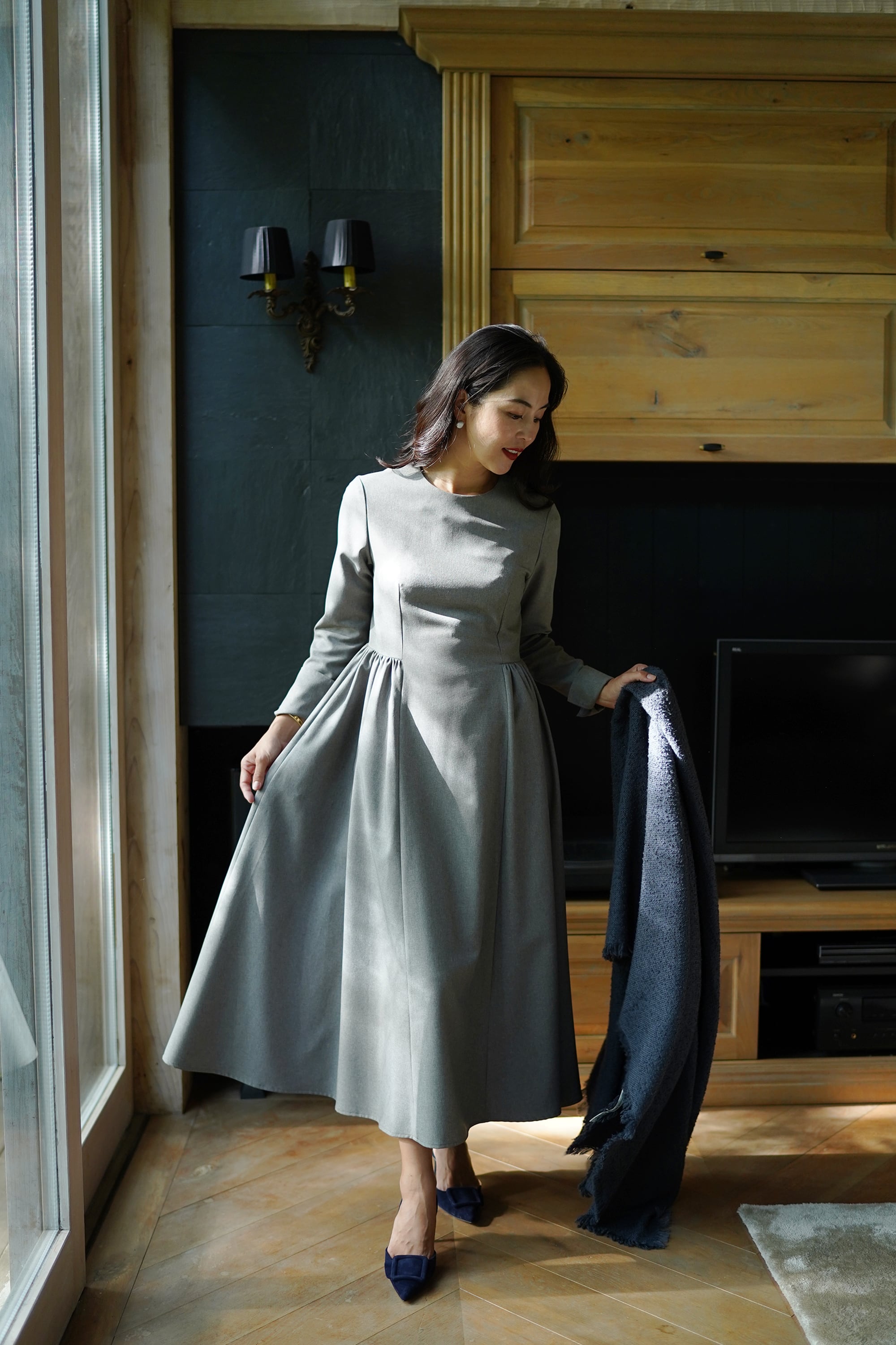 スカートはたっぷりのフレアで、慌ただしい私たちの日々の動きをエレガントに演出してくれます。靴や羽織の合わせによってはカジュアルにもなる!究極の毎日ドレスをぜひ、日々のお供に!