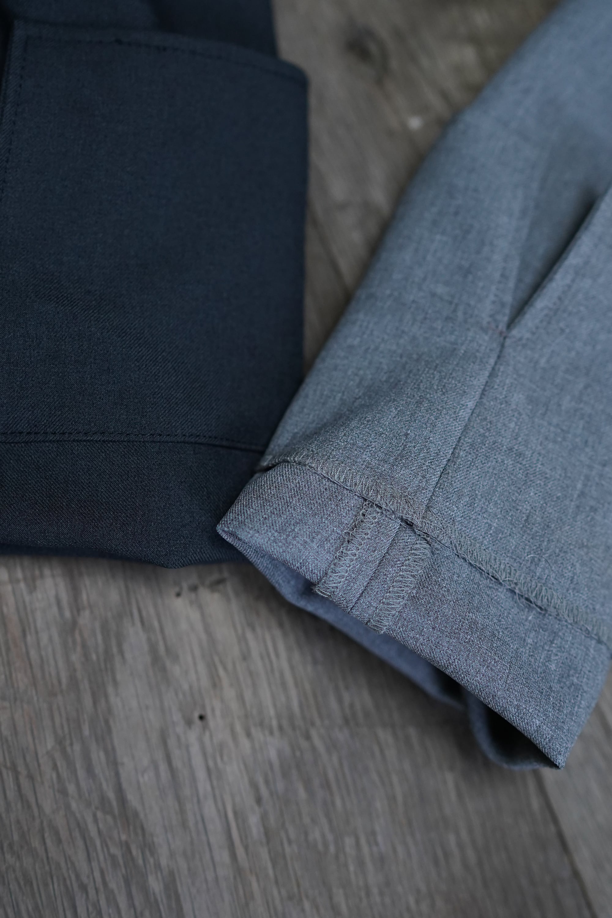 この美シルエットと質感でありながら、撥水、防汚、防シワ、両サイドにポケット付き